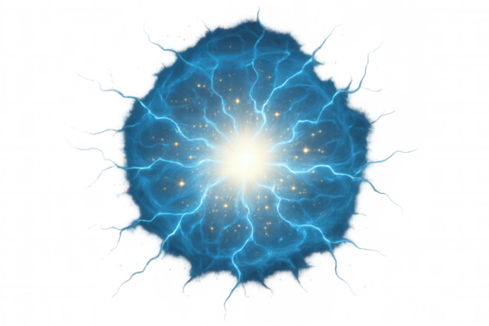 Electric currents flowing through a blue plasma ball on a transparent background, creating a mesmerizing display of energy