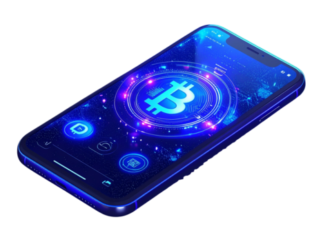 Isolated Smartphone banking app interface with courthouse building symbol on display
