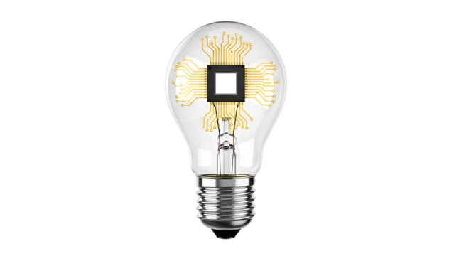 Glowing blue ai chip with intricate circuitry and connections isolated on transparent background
