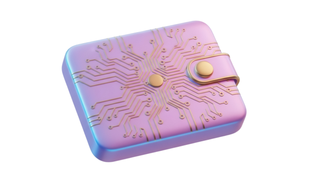 Digital wallet with circuit board design isolated PNG, modern cryptocurrency storage for secure transactions on transparent background