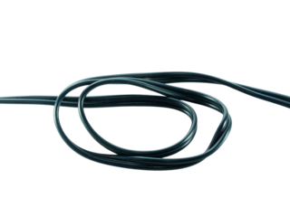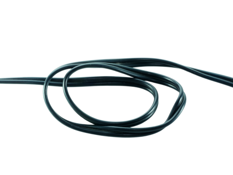 Coil of yellow electrical wire with red and black power leads on a transparent background