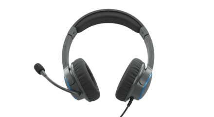 Black gaming headphones with microphone isolated on transparent background