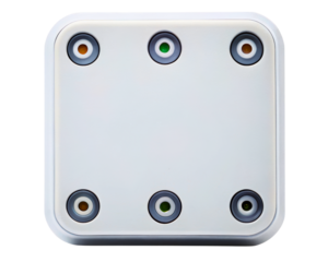 White control panel with six colorful indicator lights on a transparent background