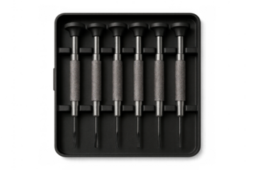 Precision screwdriver set in a case, ready for electronic repairs and small parts assembly, transparent background