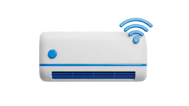 3D Smart air conditioner with Wi-Fi symbol on transparent background