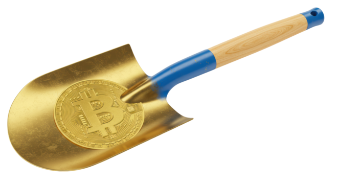 Isolated Shovel with Bitcoin Symbol for Cryptocurrency