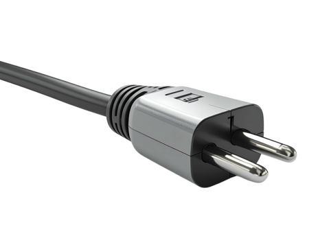 Geeky businessman holding two cables with transparent background