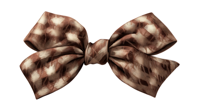 Brown checkered pattern tie bow accessory displaying woven fabric details and elegant design, perfect for fashion, celebration, or formal occasions with a transparent background, png