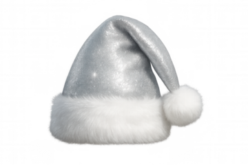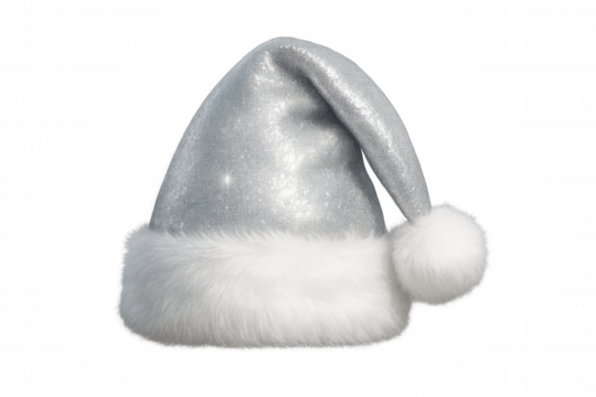 Silver christmas hat with white fur and transparent background, perfect for festive holiday designs