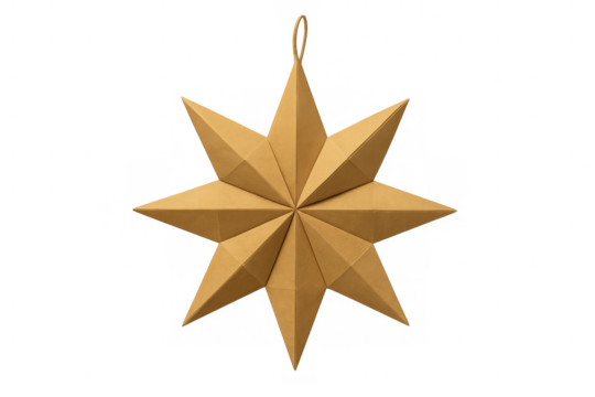 Gold paper christmas star ornament transparent background