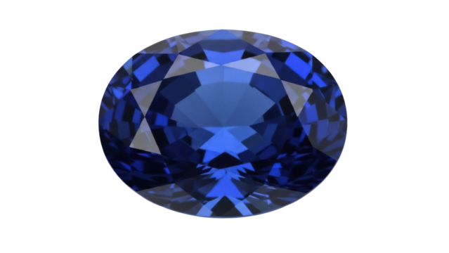 Elegant purple faceted crystal stone on blue circular base, transparent background