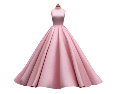 Elegant pink bridesmaid dress, sleeveless formal gown with high neckline, full skirt, soft fabric, perfect for wedding ceremony or prom, feminine and graceful style