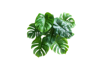 Monstera Plant: A lush monstera plant with its iconic split leaves is isolated, showcasing its vibrant green color and intricate leaf patterns in a top-down view, perfect for interior design.