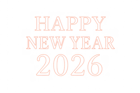 Happy new year 2026 cursive light blue neon sign on transparent background