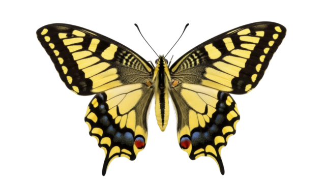 Isolated yellow swallowtail butterfly, beautiful wing pattern and color, elegant insect species