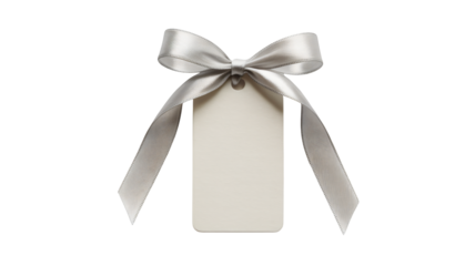 Blank gift tag with cream ribbon bow for text or price, representing sales, promotions, and special occasion messaging