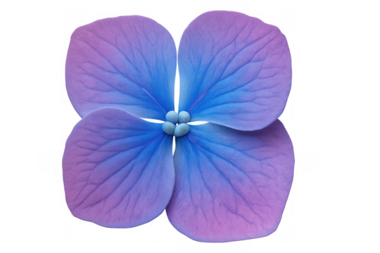 Hydrangea flower presenting vibrant blue and purple petals, displaying natural beauty on transparent background