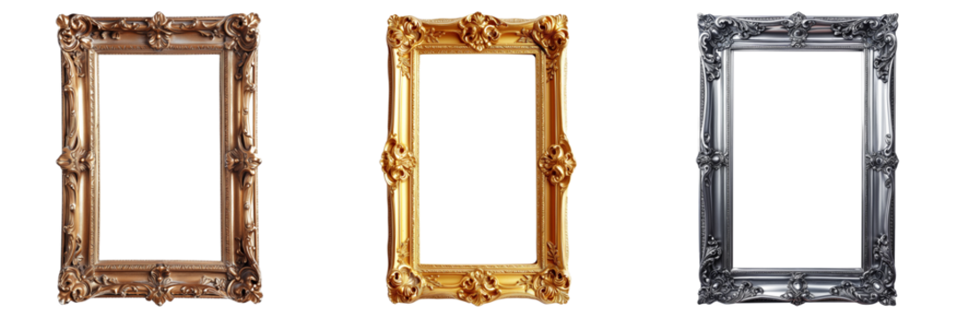 Modern minimalist silver frame panel with transparent background