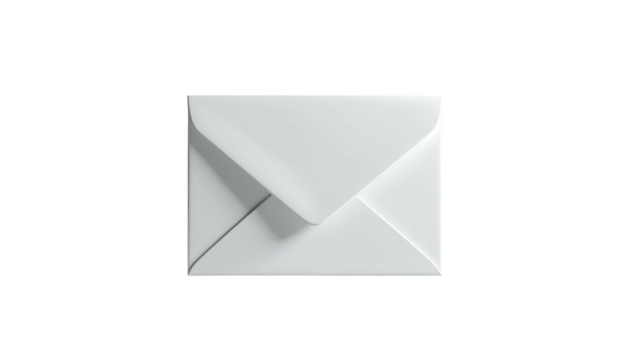 Clean, white envelope, sealed and centered on a black background, with shadows