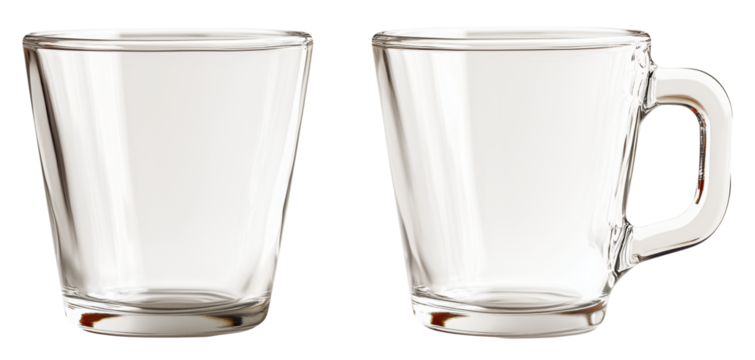 Clear glass measuring cups showcase modern design, perfect for precise measurements in cooking and baking. Their elegant appearance enhances any kitchen setting.Isolated on transparent background