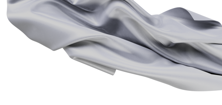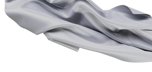 Abstract and elegant image of silver fabric, silk or satin, flowing on a white background. This image is suitable for lu