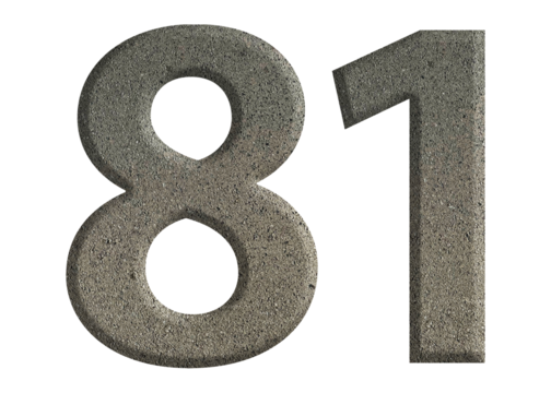 The shape of the number 81 is made of cement isolated on transparent background. Suitable for birthday, anniversary and Memorial Day templates