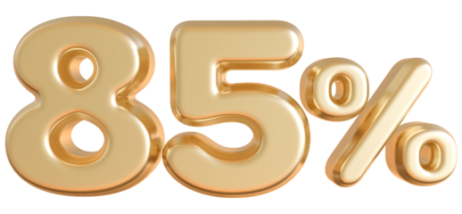Isolated golden eighty-five percent symbol, 85% sale discount, percentage sign on surface