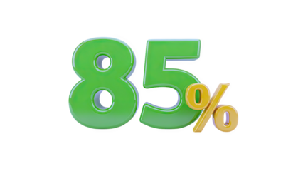 3D 85 Percent Sign Green and Yellow 3D Render on transparent background