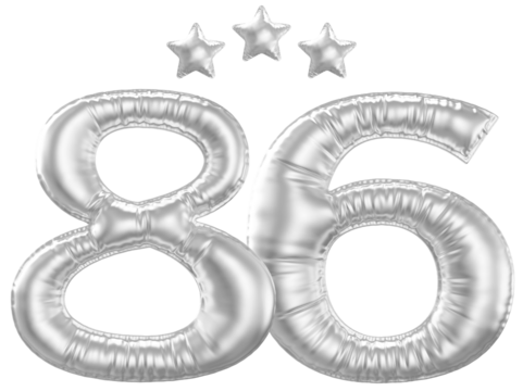 3D Pink Balloons and Number 86 with Th on transparent background