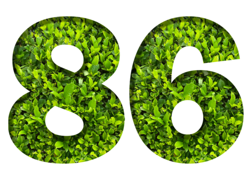 number 86 from green leaves  isolated on transparent background. suitable for birthday, anniversary and memorial day templates.