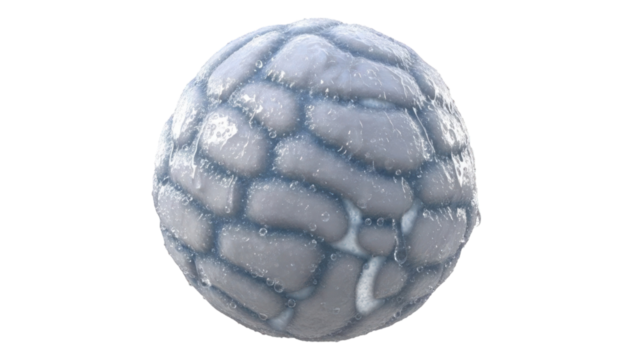 Abstract textured sphere with an icy, cobblestone pattern isolated on transparent background