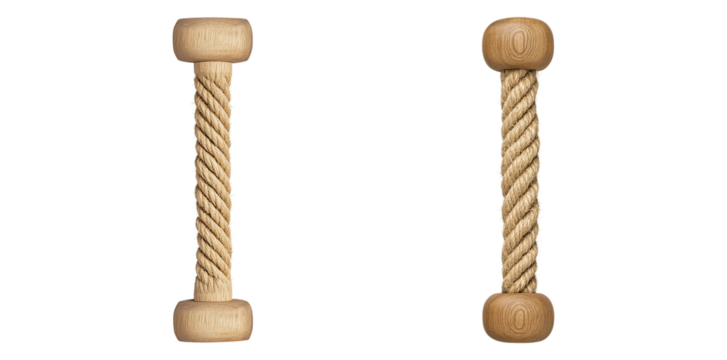 Two beige rope wrapped wooden dowels for crafts and home décor rustic style diy projects and interior design transparent background