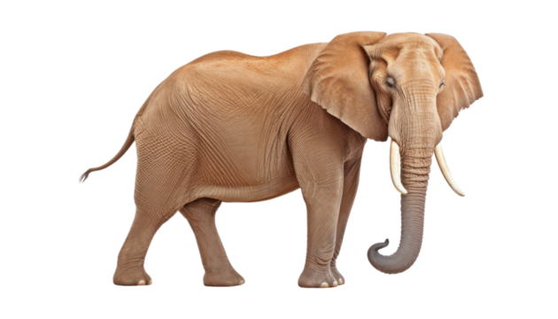 an elephant with tusks facing away from the camera on a transparent background, PNG image, PNG file, Generative art.