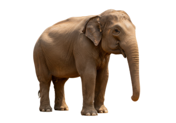 Isolated Asian elephant standing alert facing left side, front view, animal wildlife