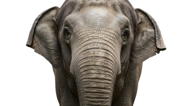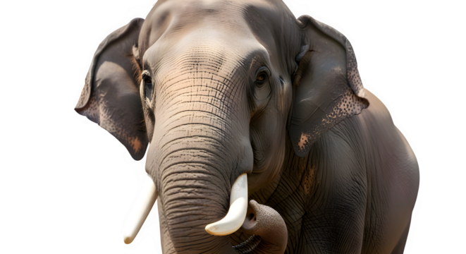 Elephant Head Close-Up. Majestic Wildlife And Conservation Symbol Isolated On Transparent Background