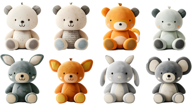 Stuffed animals isolated on a transparent background, PNG, Ai