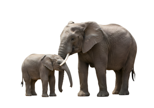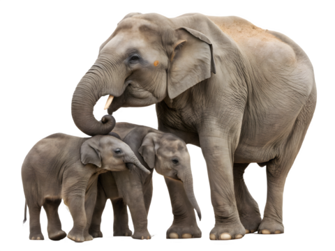Elephant Family Walking in Single File Portrait white background, isolated on transparent background