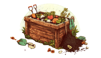 Wooden Raised Garden Bed With Young Green Sprouts And Rich Dark Soil isolated on a transparent Background