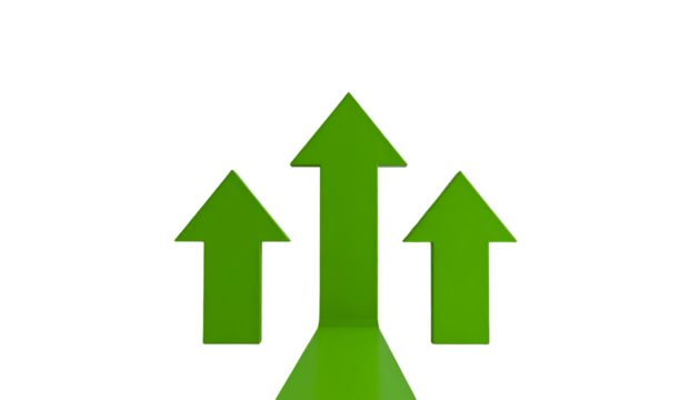 Three green arrows pointing up against a stark black background
