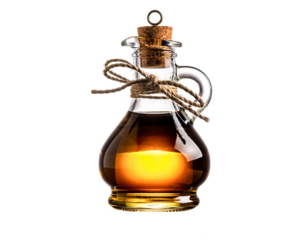 Small glass bottle with cork stopper filled with amber liquid and tied with twine Keywords: bottle, glass, cork, stopper