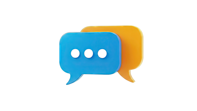 A 3D rendering of a red speech bubble with an ellipsis and a white bubble with a question mark symbolizing communication inquiry and support