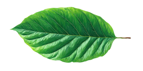 A vibrant, detailed, realistic painting of a large, oval-shaped green leaf on a black background