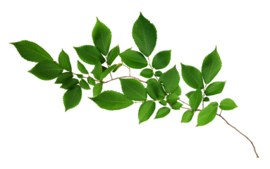 Fresh green elm branch isolated on transparent background, showcasing the vibrant leaves and intricate details of natures growth in springtime