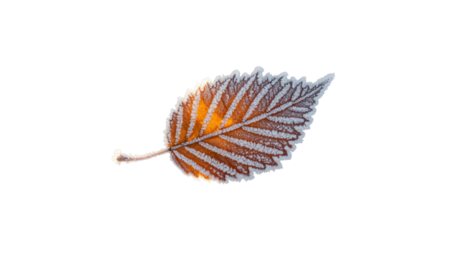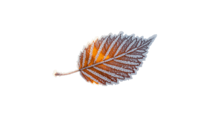 Frost covered elm leaf isolated on black