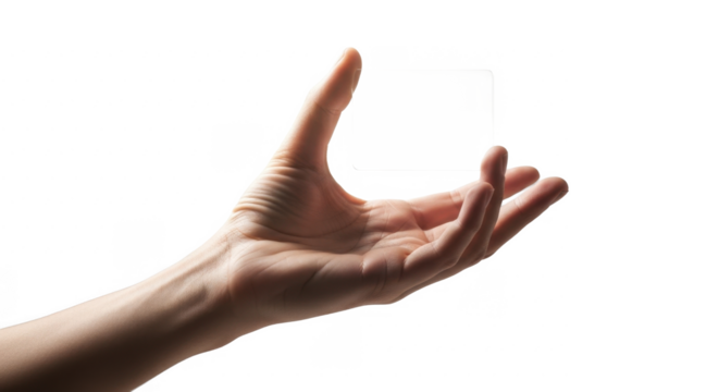 A close-up of a human hand reaching upwards with fingers slightly bent isolated on transparent background