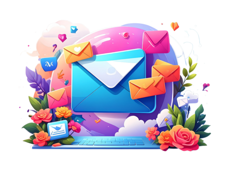 Email text with icons on transparent background for communication
