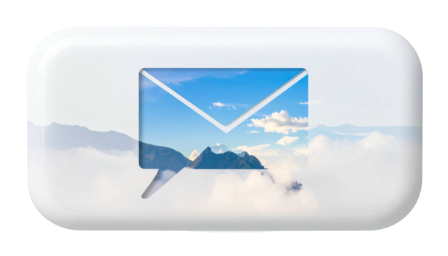 Glossy, rounded button with an envelope icon, cloudscape backdrop