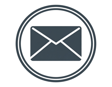 A blue envelope icon on a white background, symbolizing digital communication and messaging