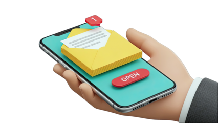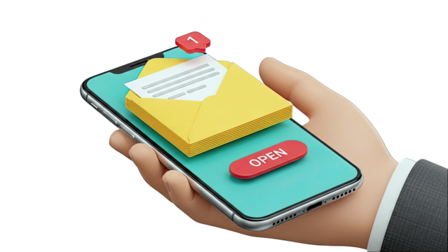 Smartphone with new email notification and open button