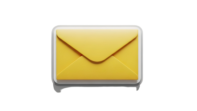 Yellow envelope icon on transparent background for digital communication